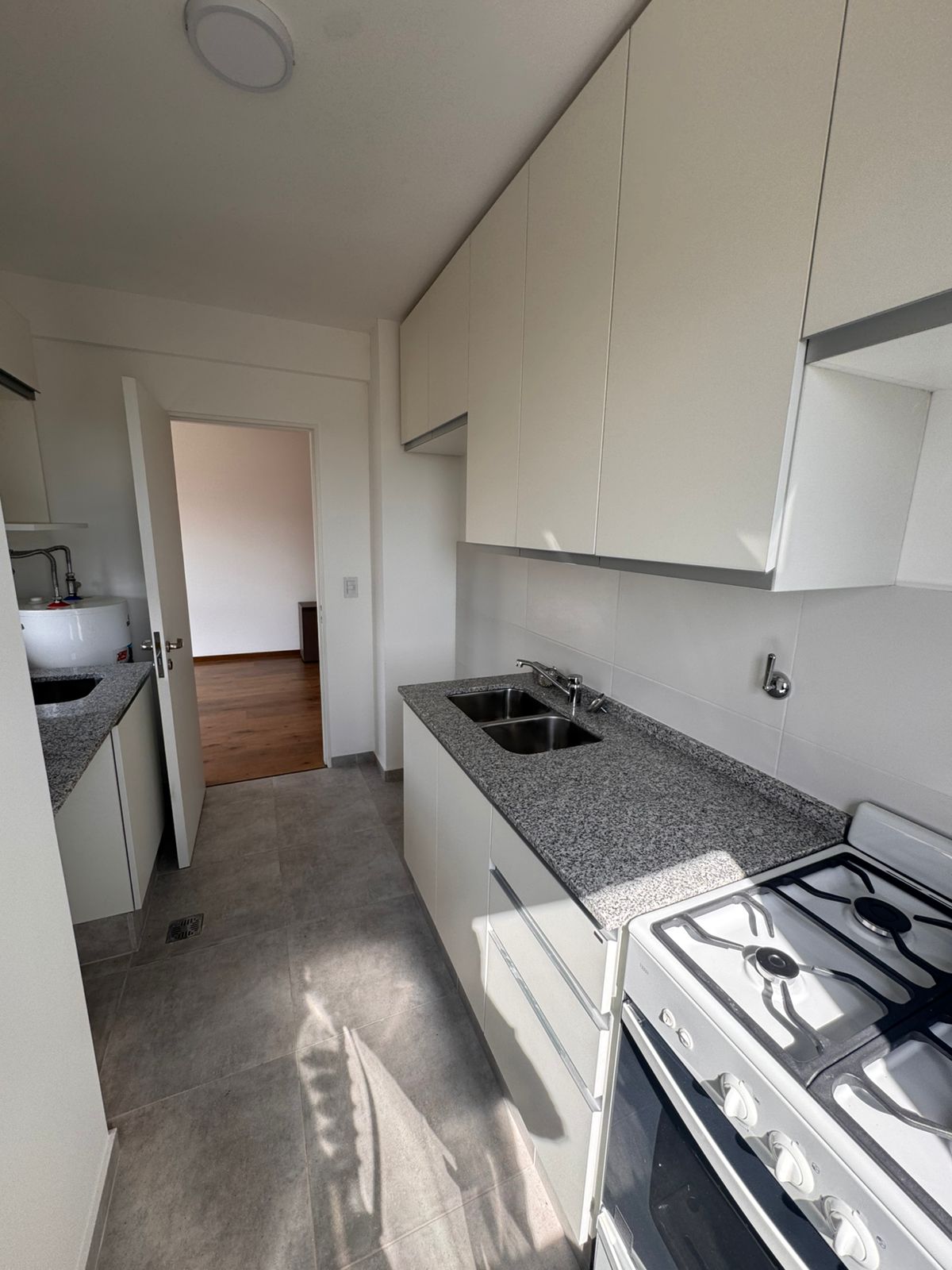 Propiedad a estrenar, segundo piso, orientación Norte, dos dormitorios, frente, living-comedor, cocina semi-integrada con lavadero integrado, baño completo, balcón y cochera.