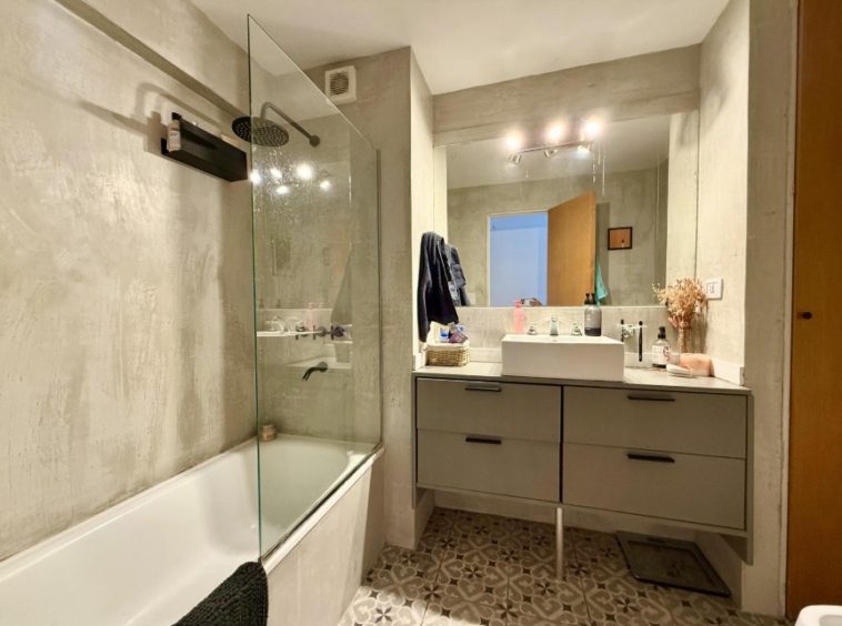 Baño completo con bañera y mampara.
